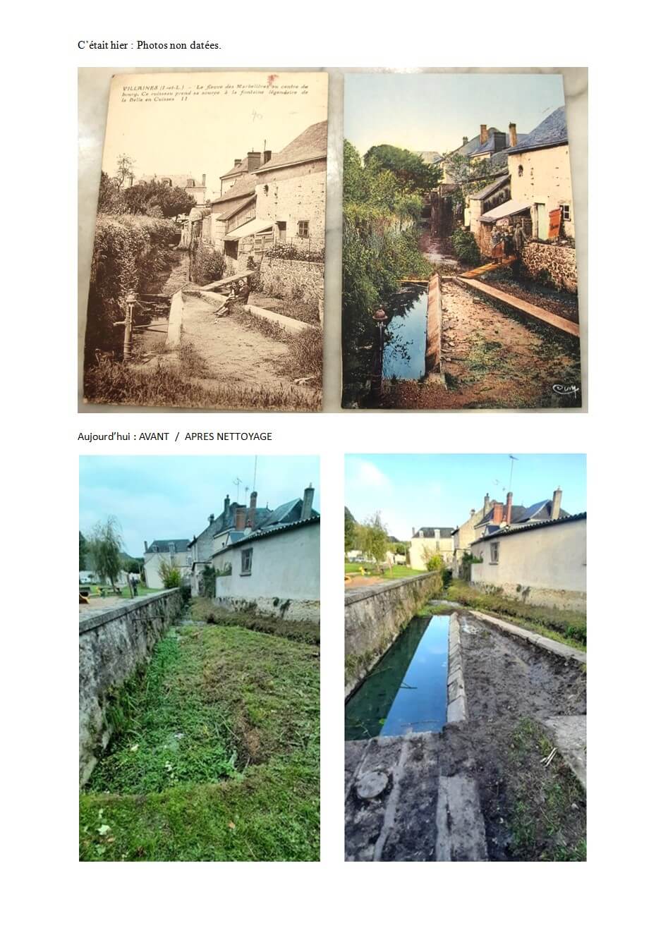 A noter sur une des photos, qu’il est décrit comme « situé au bord du fleuve des Marbellières et qu’il est alimenté par la source située à la fontaine de la belle en cuisses » !