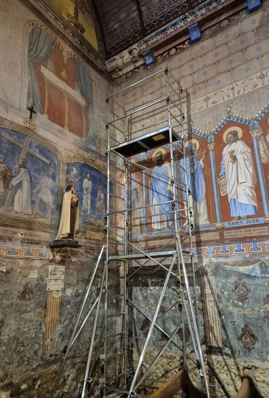 Actuellement, la restauration (toiture et peintures) de l’abside et l’ancien chœur sont en cours.