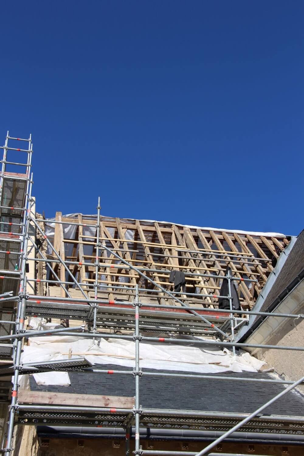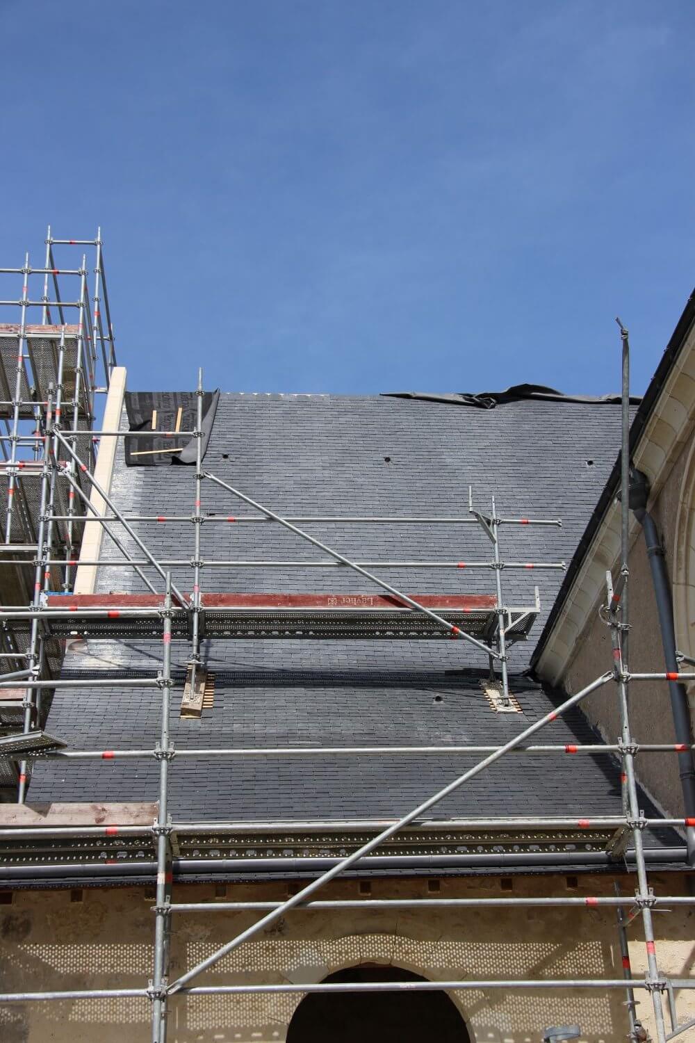 Début novembre 2024, la pose d’un impressionnant échafaudage sur le transept ouest a permis la rénovation de la charpente, des toitures et la maçonnerie côté ouest.